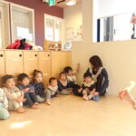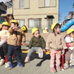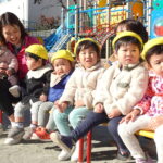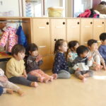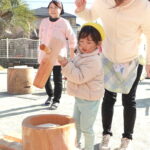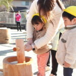 幼稚園に着くとおもちつきの準備をしており、興味津々の子ども達👀