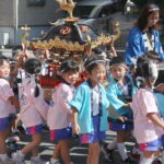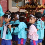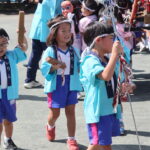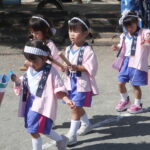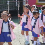 愛隣幼稚園のお祭りごっこは本格的✨拍子木や錫杖もあり、「ごっこ」の域を超えて大きなお神輿を担ぎました😁