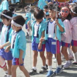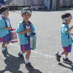 年少組さんは園庭を、年中・年長さんは園庭→正門~バスロータリー→園庭と長い距離を頑張ってくれましたよ~😊