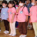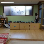 幼稚園に不審者が入ってきてしまったと想定し、避難方法を確認しました。(実際にこんな不審者はいないと思いますが…笑)