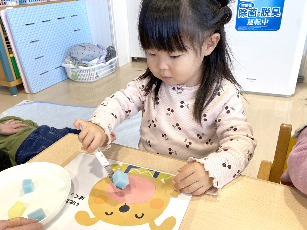 0・1歳児はスプーン、2歳児は箸の持ち方の確認をしました😀